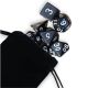 Set di 7 Dadi - Nero - Bianco + Sacchetto