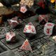Set di 7 Dadi Deluxe - Rifted Blade Metal RPG Dice Set è un set di dadi poliedrici in metallo dal design imponente e aggressivo, caratterizzato da finitura argento con venature rosse, ideale per sessioni GDR intense e scenografiche.