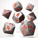 Il set include tutti i dadi poliedrici standard (d4, d6, d8, d10, d12, d20 e dado percentuale). I numeri sono incisi in profondità e verniciati a mano per garantire leggibilità e precisione, con bilanciamento ottimale per tiri equi e affidabili.
