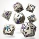 Il Set di 7 Dadi Deluxe - Elderwyrm Metal RPG Dice Set è un set di dadi in metallo argentato dal design draconico, con draghi in rilievo blu e viola. Elegante e imponente, questo set offre un’esperienza di gioco di ruolo epica, combinando peso, qualità e estetica scenografica.