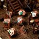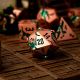 Questi dadi evocano storie di foreste incantate e personaggi astuti. Il contrasto tra il rosa delicato del metallo e i dettagli verde intenso dei draghi crea un effetto visivo unico, perfetto per chi desidera distinguersi durante il gioco.