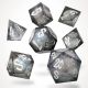 Set completo di 7 dadi poliedrici in resina con nucleo liquido